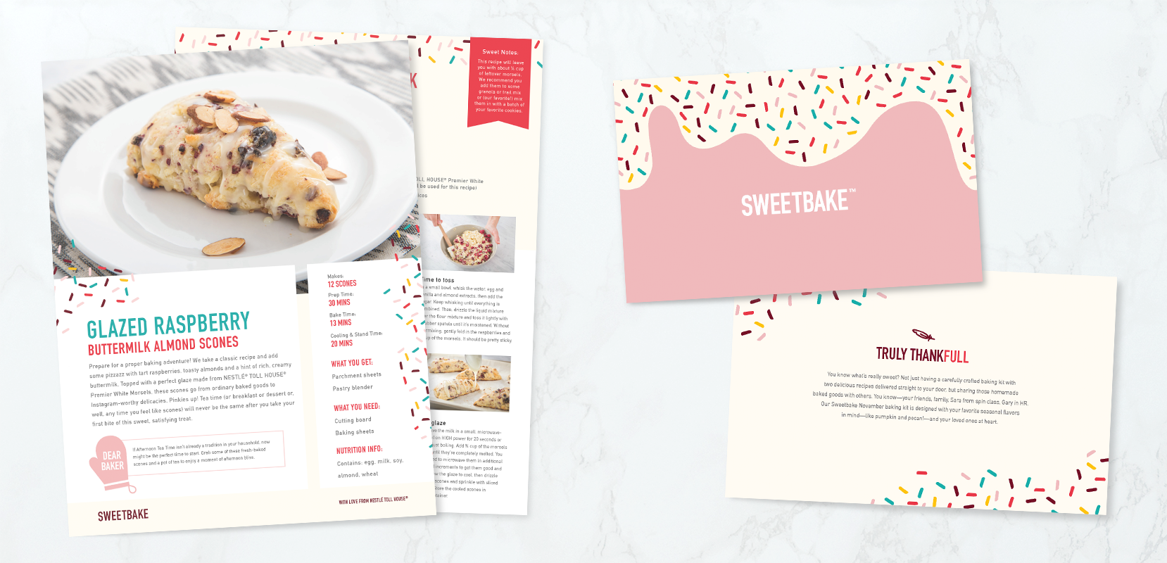 It’s not every day you get to create a brand for a name like Nestle—but that’s exactly what my team accomplished for the launch of Nestlé Toll House’s baking subscription service. Designed to captivate a millennial audience, we developed everything from scratch: the brand name, visual identity, storyboards for photoshoots, food styling, and the production of final materials delivered to consumers in each subscription box.